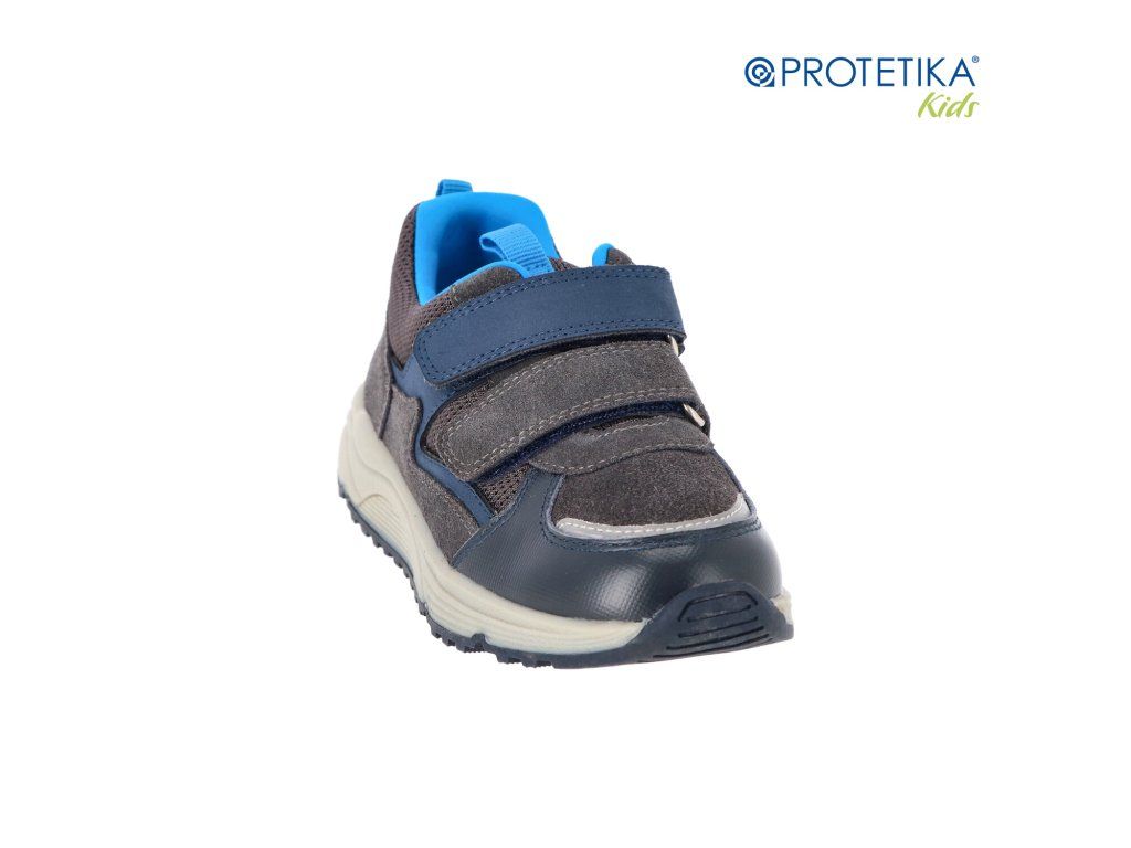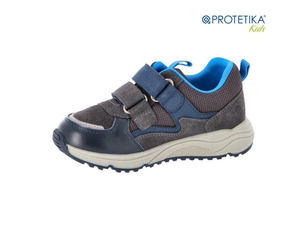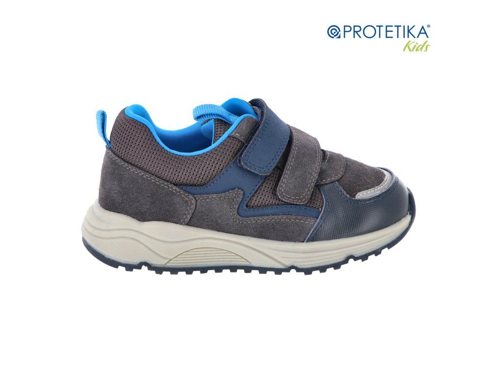 Dětské jarní tenisky Protetika LEO šedé ve stylové šedé barvě s modrými detaily jsou ideální volbou pro aktivní chlapce. Tento model kombinuje prémiovou broušenou kůži s praktickou hladkou omyvatelnou kůží, což zaručuje nejen atraktivní vzhled, ale i jednoduchou údržbu po hrách venku.